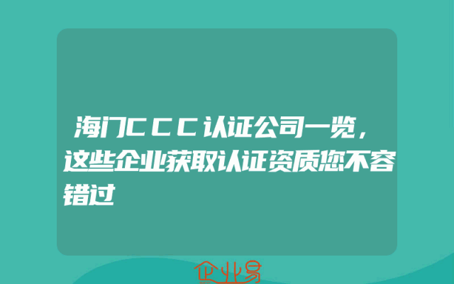 - 海门CCC认证公司一览,这些企业获取认证资质您不容错过