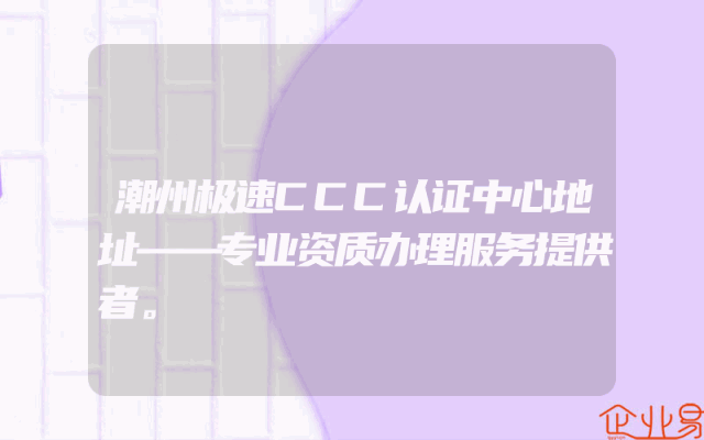 - 潮州极速CCC认证中心地址——专业资质办理服务提供者。