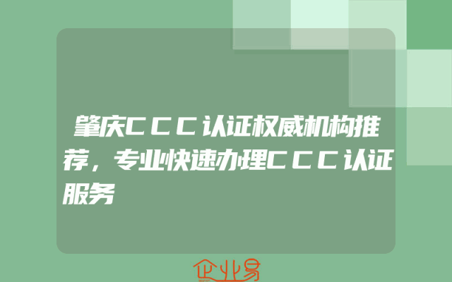 - 肇庆CCC认证权威机构推荐,专业快速办理CCC认证服务