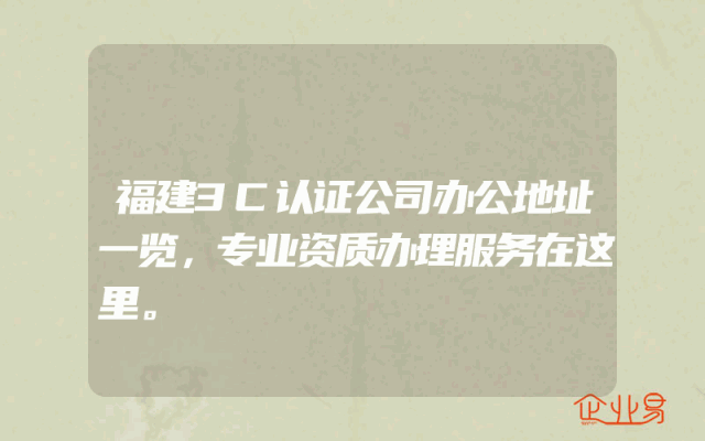- 福建3C认证公司办公地址一览,专业资质办理服务在这里。
