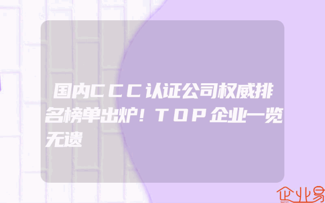 - 国内CCC认证公司权威排名榜单出炉!TOP企业一览无遗