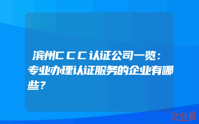 - 滨州CCC认证公司一览:专业办理认证服务的企业有哪些?