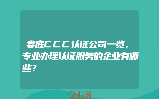 - 娄底CCC认证公司一览,专业办理认证服务的企业有哪些?
