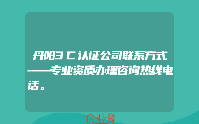 - 丹阳3C认证公司联系方式——专业资质办理咨询热线电话。