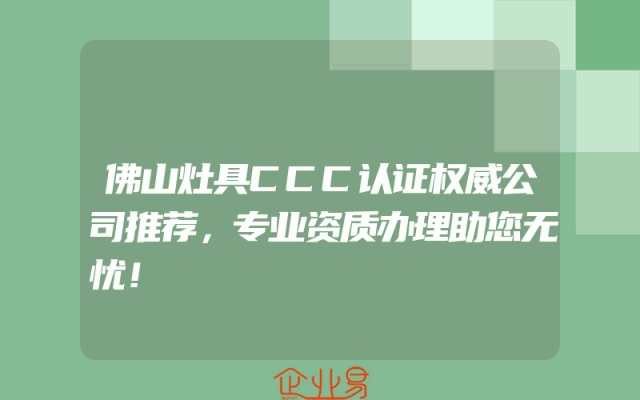 - 佛山灶具CCC认证权威公司推荐,专业资质办理助您无忧!