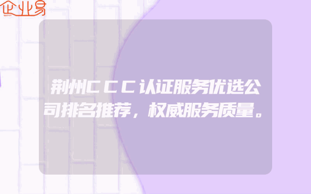 - 荆州CCC认证服务优选公司排名推荐在荆州地区,许多企业为了符合国内外市场的需求和行业标准,都在寻求优质的CCC认证服务。以下是荆州地区CCC认证服务的优选公司排名推荐,权威解析其服务质量,以便企业做出明