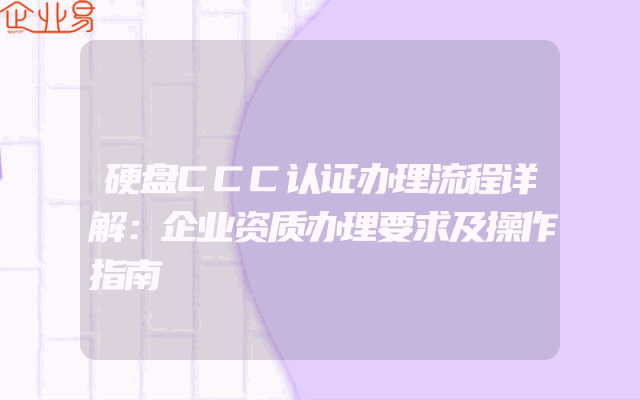 - 硬盘CCC认证办理流程详解:企业资质办理要求及操作指南
