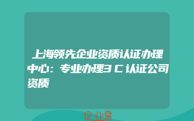 - 上海领先企业资质认证办理中心:专业办理3C认证公司资质