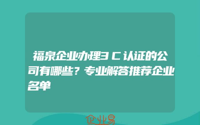 - 福泉企业办理3C认证的公司有哪些?专业解答推荐企业名单