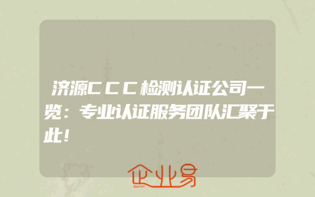 - 济源CCC检测认证公司一览:专业认证服务团队汇聚于此!