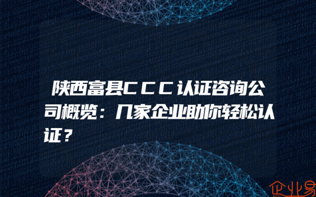 - 陕西富县CCC认证咨询公司概览:几家企业助你轻松认证?