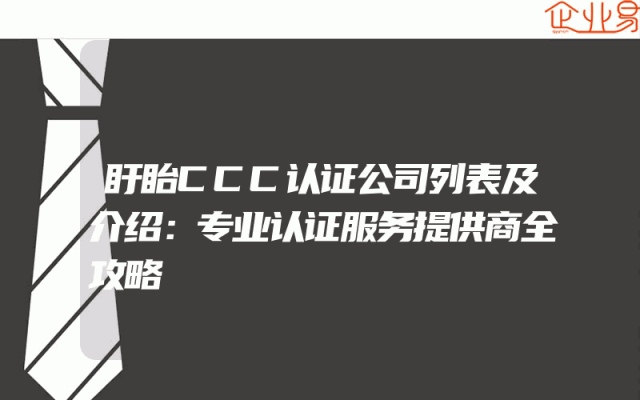 - 盱眙CCC认证公司列表及介绍:专业认证服务提供商全攻略