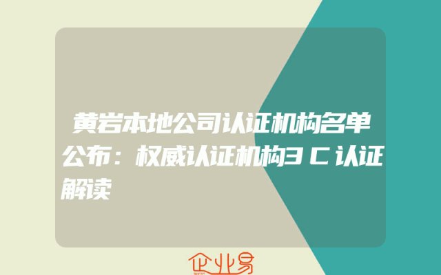 - 黄岩本地公司认证机构名单公布:权威认证机构3C认证解读