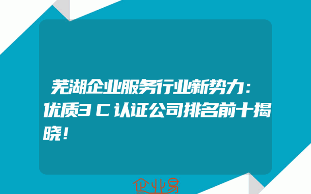 - 芜湖企业服务行业新势力:优质3C认证公司排名前十揭晓!