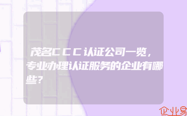 - 茂名CCC认证公司一览,专业办理认证服务的企业有哪些?