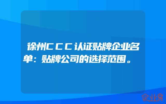 - 徐州CCC认证贴牌企业名单:贴牌公司的选择范围。