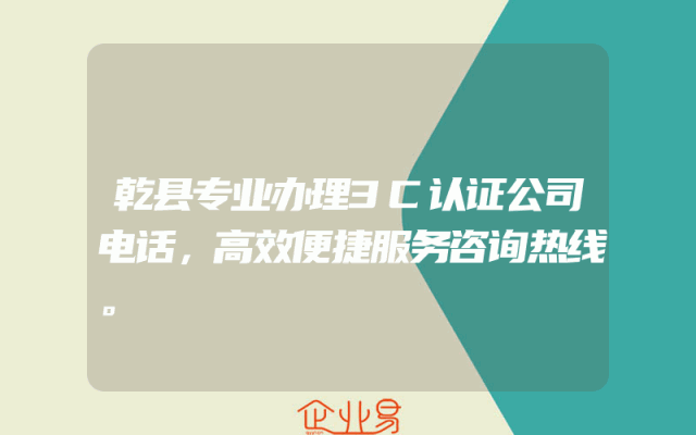 - 乾县专业办理3C认证公司电话,高效便捷服务咨询热线。