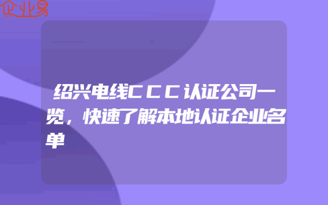 - 绍兴电线CCC认证公司一览,快速了解本地认证企业名单