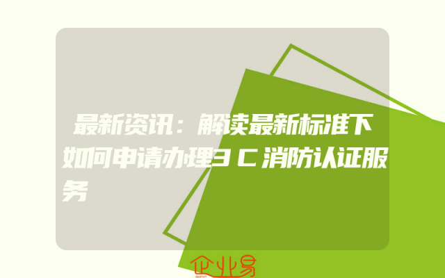 - 最新资讯:解读最新标准下如何申请办理3C消防认证服务