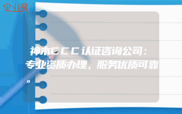 - 神木CCC认证咨询公司:专业资质办理,服务优质可靠。