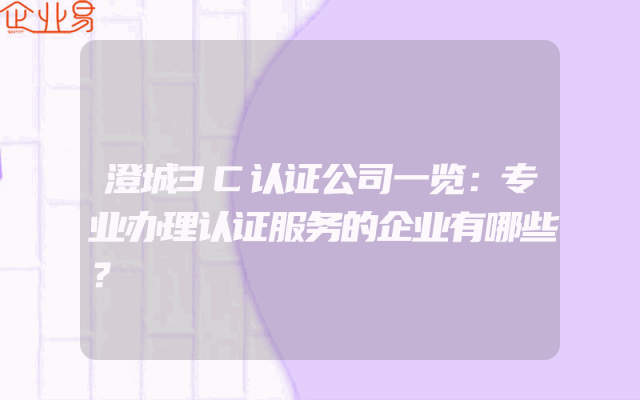 - 澄城3C认证公司一览:专业办理认证服务的企业有哪些?