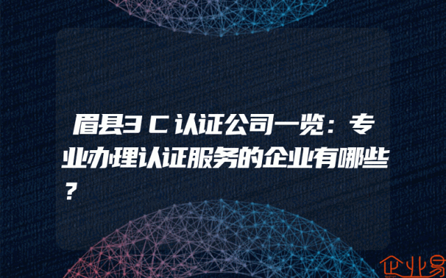 - 眉县3C认证公司一览:专业办理认证服务的企业有哪些?