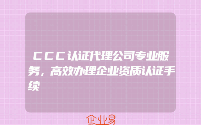 - CCC认证代理公司专业服务,高效办理企业资质认证手续