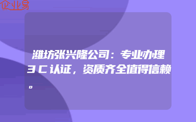 - 潍坊张兴隆公司:专业办理3C认证,资质齐全值得信赖。