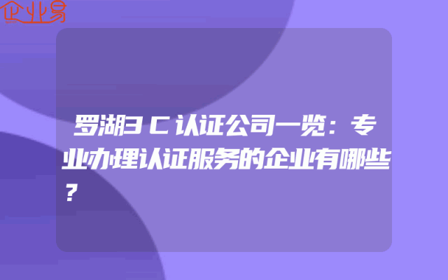 - 罗湖3C认证公司一览:专业办理认证服务的企业有哪些?
