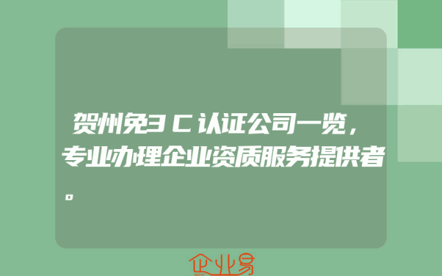 - 贺州免3C认证公司一览,专业办理企业资质服务提供者。