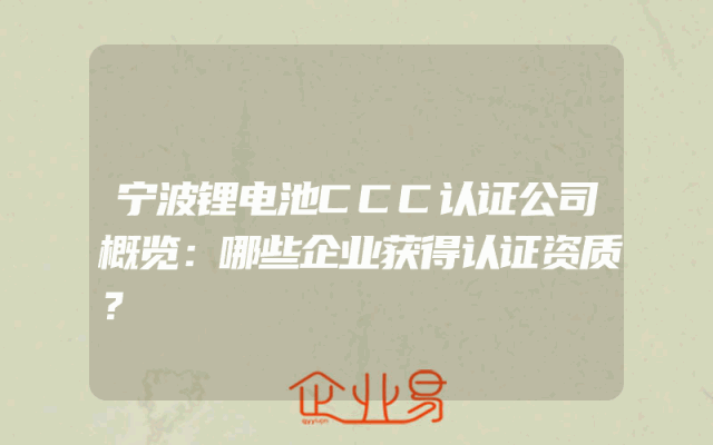 - 宁波锂电池CCC认证公司概览:哪些企业获得认证资质?