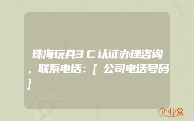 - 珠海玩具3C认证办理咨询,联系电话:[公司电话号码]
