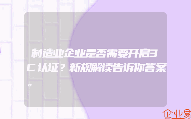 - 制造业企业是否需要开启3C认证?新规解读告诉你答案。