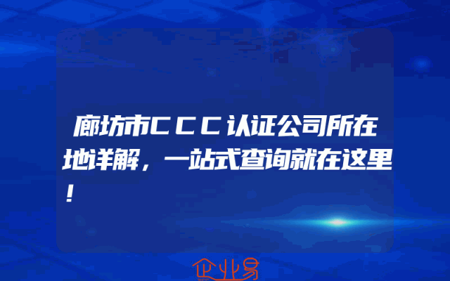 - 廊坊市CCC认证公司所在地详解,一站式查询就在这里!