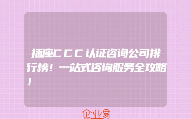 - 插座CCC认证咨询公司排行榜!一站式咨询服务全攻略!