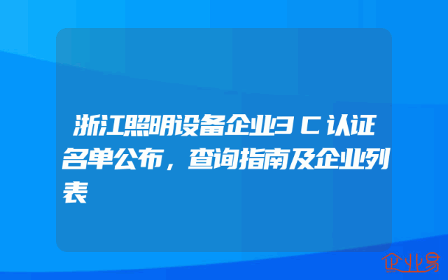 - 浙江照明设备企业3C认证名单公布,查询指南及企业列表