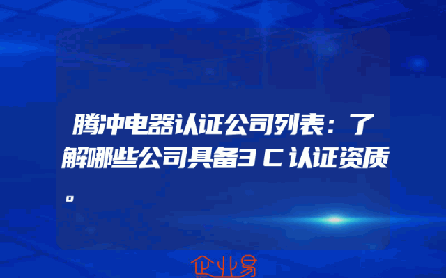 - 腾冲电器认证公司列表:了解哪些公司具备3C认证资质。