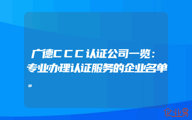 - 广德CCC认证公司一览:专业办理认证服务的企业名单。