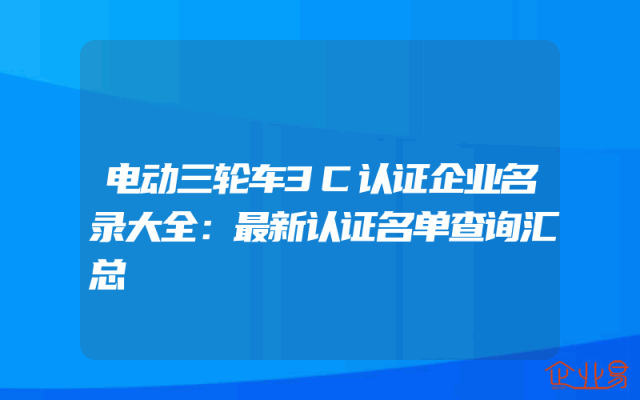 - 电动三轮车3C认证企业名录大全:最新认证名单查询汇总