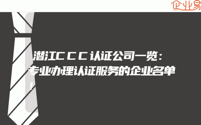 - 潜江CCC认证公司一览:专业办理认证服务的企业名单!