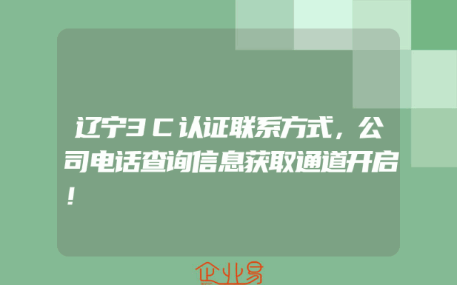 - 辽宁3C认证联系方式:公司电话查询信息获取通道开启!一、引言在中国,随着市场规范化进程的不断推进,各类认证逐渐成为企业进入市场的必备条件。其中,3C认证作为我国对产品安全的强制认证之一,受到了广大企业和消费者的关注。在辽宁省,许多企业需要进