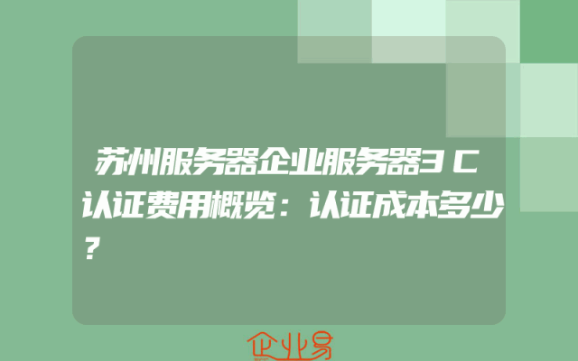 - 苏州服务器企业服务器3C认证费用概览:认证成本多少?