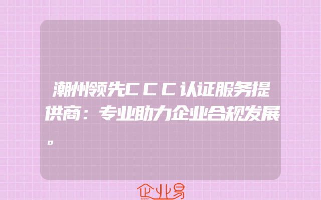 - 潮州领先CCC认证服务提供商:专业助力企业合规发展。