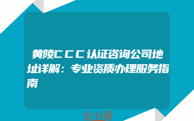 - 黄陵CCC认证咨询公司地址详解:专业资质办理服务指南