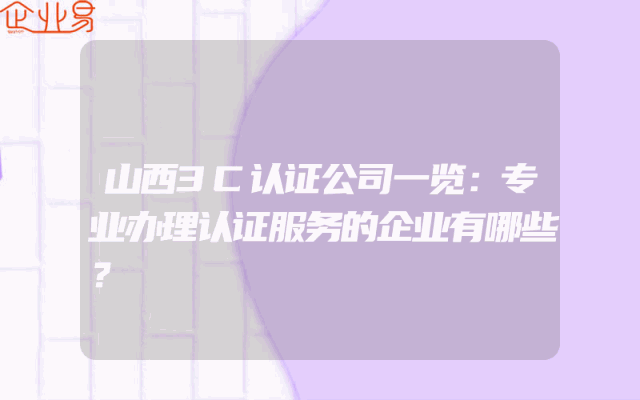 - 山西3C认证公司一览:专业办理认证服务的企业有哪些?
