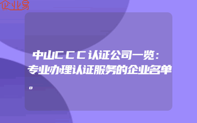 - 中山CCC认证公司一览:专业办理认证服务的企业名单。