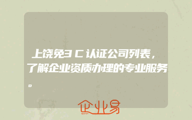 - 上饶免3C认证公司列表,了解企业资质办理的专业服务。