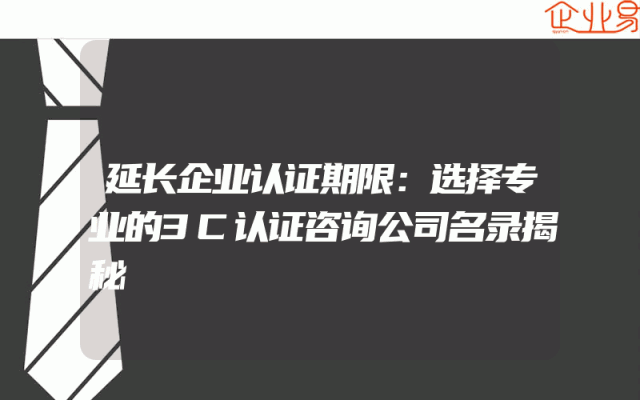 - 延长企业认证期限:选择专业的3C认证咨询公司名录揭秘