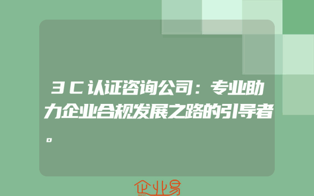 - 3C认证咨询公司:专业助力企业合规发展之路的引导者。