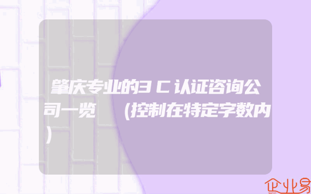 - 肇庆专业的3C认证咨询公司一览 (控制在特定字数内)